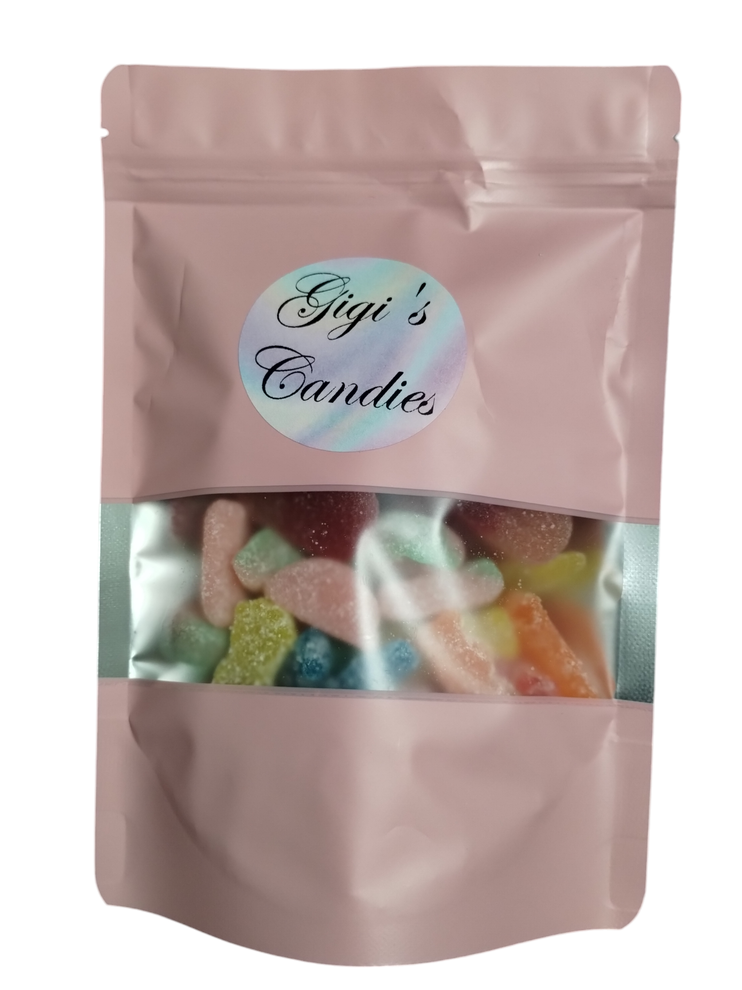 Pre selected sour candies. Dealers choice. Can be different sour candies every time.